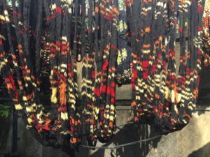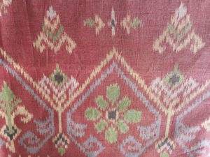 織り機は全て女性が担当、いろんな模様のイカットを皆夢中で織っている。年齢も様々で、若い子の中に全身を使って情熱的に織っている子がいた。 デザインの作成や染めを男性が担当、こちらも年齢は様々。デザインから染め、織り上がりまでで1ヶ月かかるという。織りはどの柄でも一日で織り上げるというから、それまでの工程に時間がかかるらしい。。織り一日かあ、あの集中した鋭い目はそのためだったんだ。。。上の受付に戻り、この工場でできたイカットを一枚購入した。