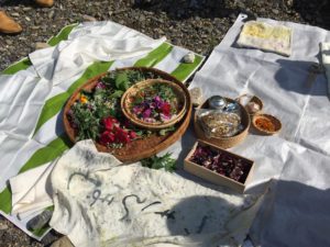tsukihihoshiさん 2019-06-292020-04-08 blog textile 花花花の素敵な1日。東京からいらした3人組、つきひほしさんから教えてもらった花色染め。生バナやドライフラワーから色々な色をもらって、皆で素敵なスカーフを作りました。