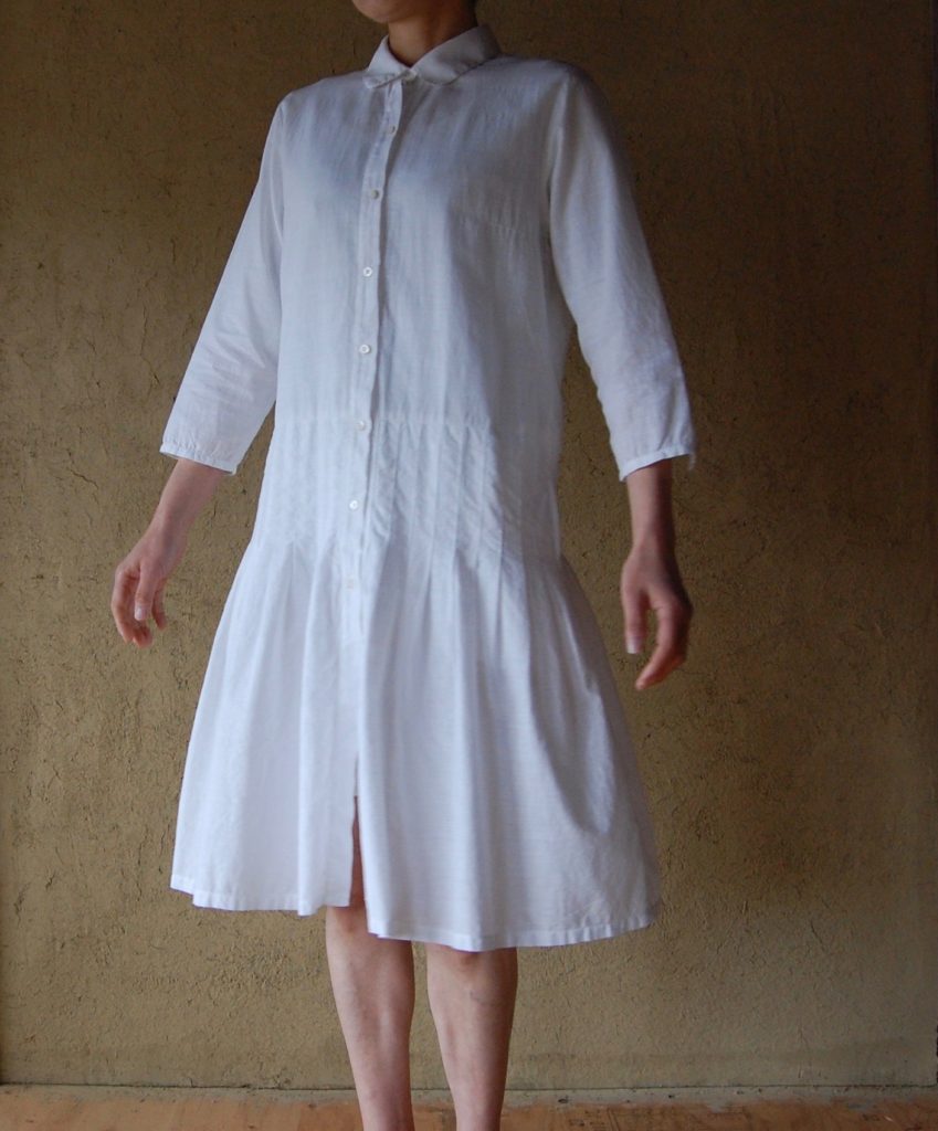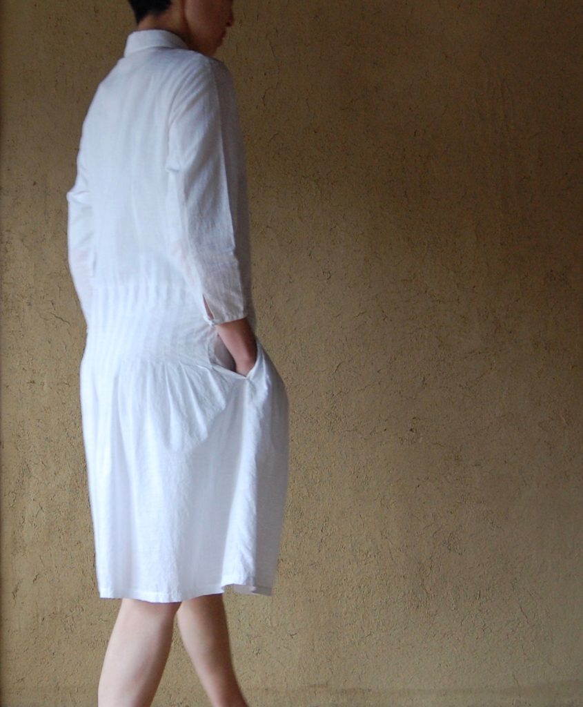 tuck one piece (organic ) 2019-09-222023-04-24 2019年 works インドの西ベンガル州の村人たちの手により、紡ぎ 織られたカデイ・コットンを使っています。ローウエストのデザインで、ヒップにタックが入っています。カデイならではの軽い着心地で、爽やかな印象です。 ーーーーーーーーー 素材:カデイ・コットン・オーガニック No.60(インド産) 色:しろ ーーーーーーーーー 肩幅 約40、5cm 着丈 95cm そで丈 41cm ーーーーーーーーー 38、300円(税込) *ただいま在庫はありません。 ーーーーーーーーー SHINOBU