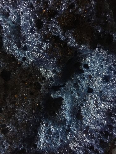 昨日、染色の作業中にどうも液の様子がおかしくなって来た。。。色は出ていたと思うけれど、染色中にいつも出るはずの泡が立たない。。。藍の華はその泡たちが集まってできたものなのです。