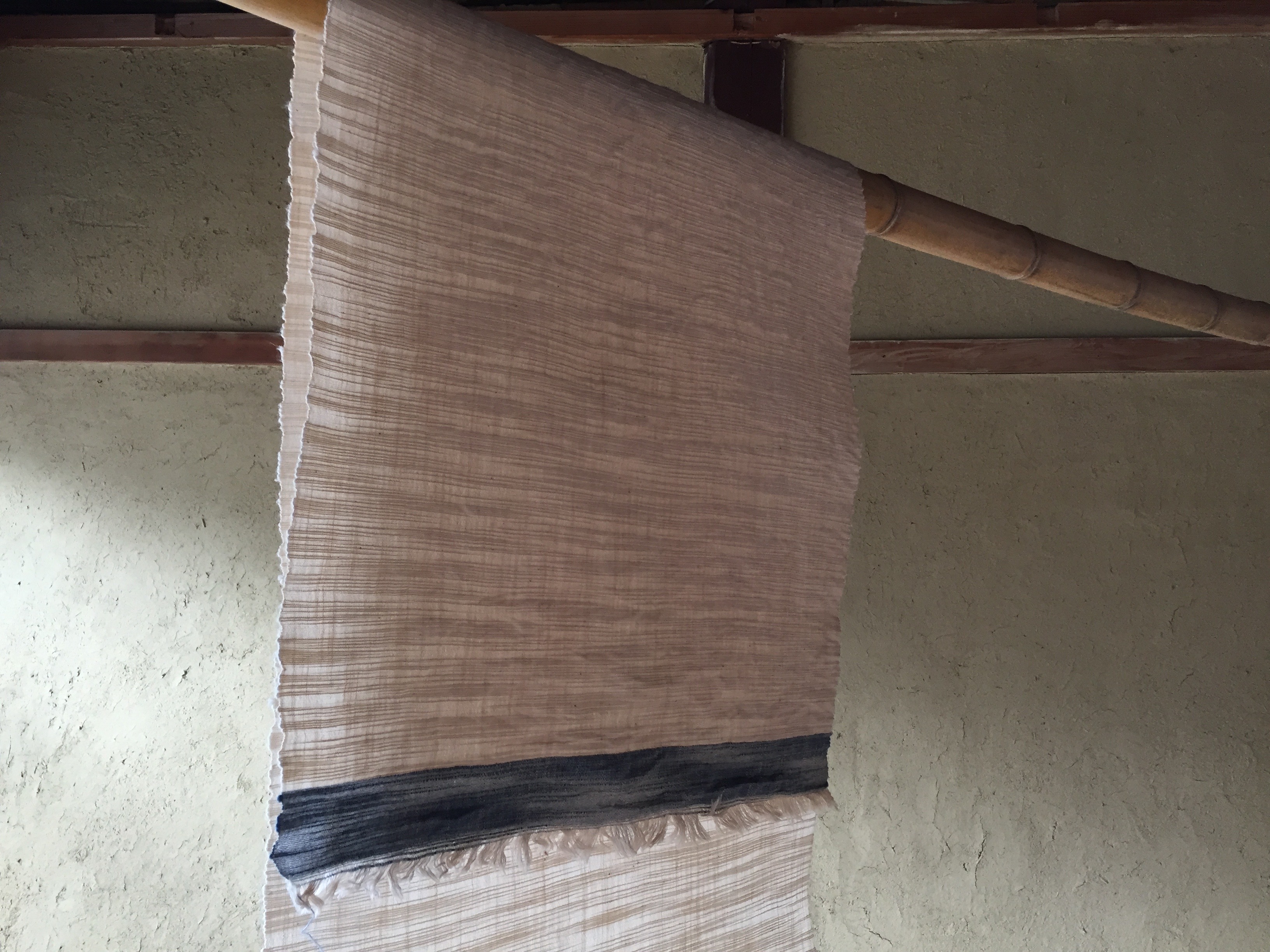 スラブ糸 手織り反物 2020-02-292021-01-11 blog textile 『途中』の大苗愛さんに昨年末におねがいした反物が出来上がってきた。糸は手つむぎではないけれど、手間をかけてじっくり織り上げられた反物である。大切に使いたい。どんな染め方がいいのか・・・ワクワクするものの、それとは違う気持ちも湧いてくる〜