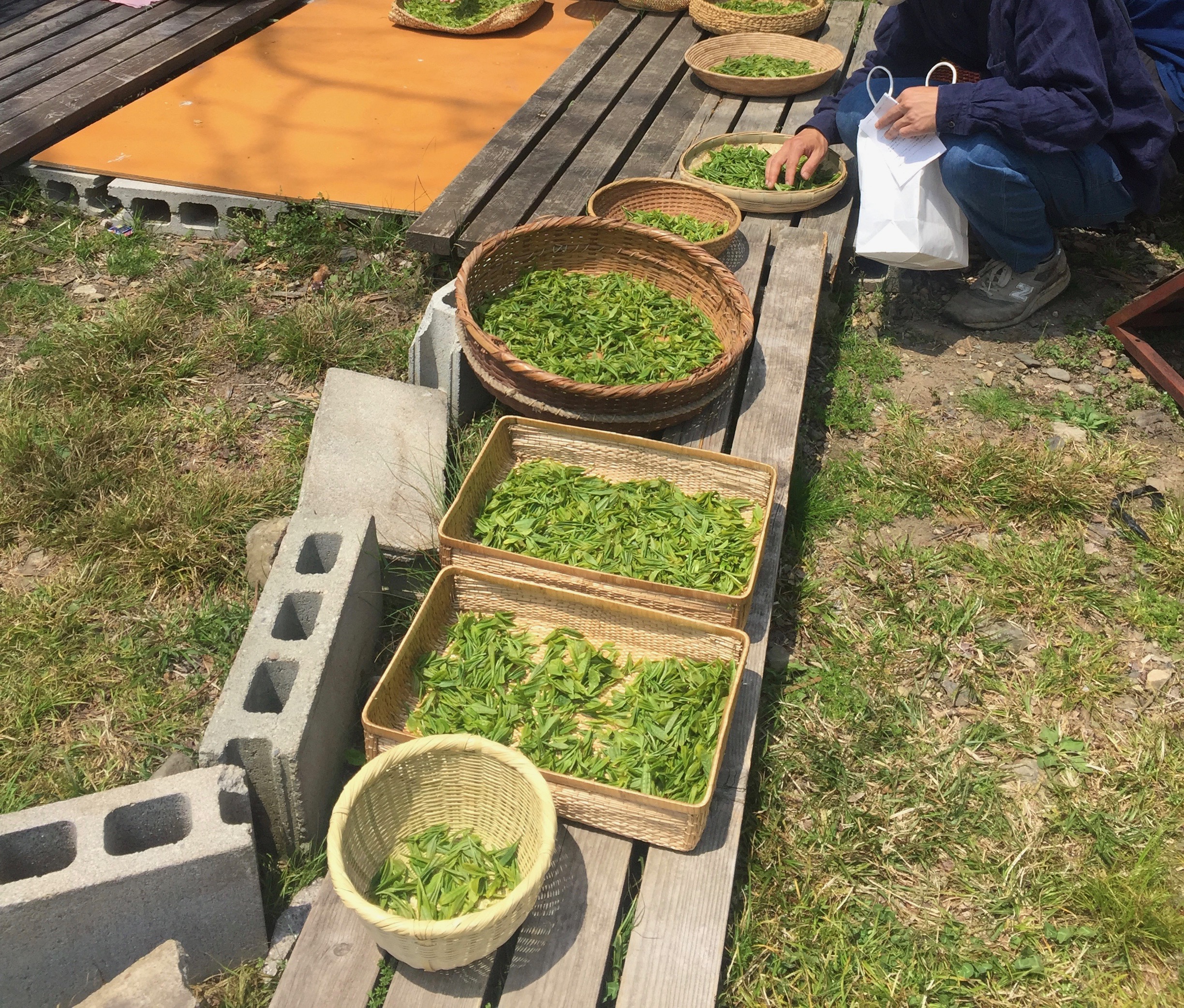 お茶摘みをしました。よく晴れた日で、新緑の茶の葉がとても綺麗に輝いていました。摘んだ後は、天日に少し干して、カゴの中で揺らし、微かな傷を作って、発酵をさせていきます。出来上がったお茶は複雑な味で、今まで飲んだことのない芳醇なウーロン茶となりました。