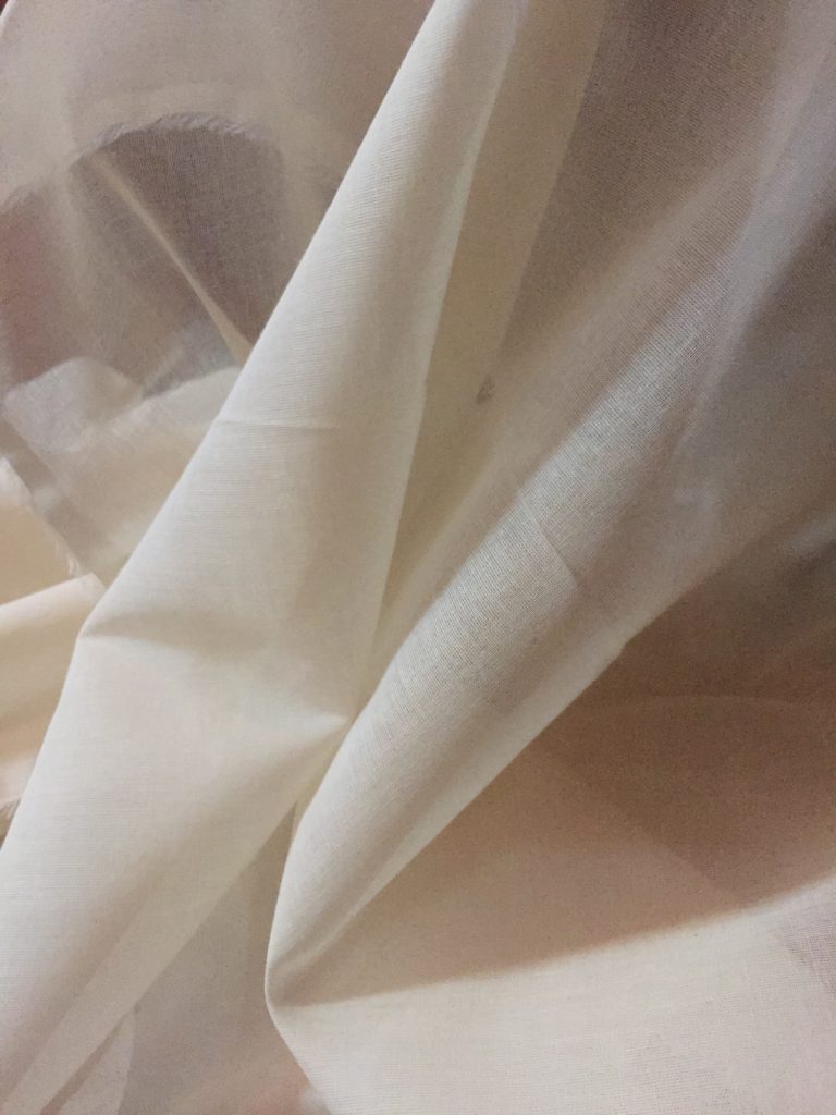 シャツ生地を探しに遠州へ。生機の生成り色。柔らかくて自然で、気持ち良さが伝わってくる。染まり具合はどんな風になるのだろう。。
