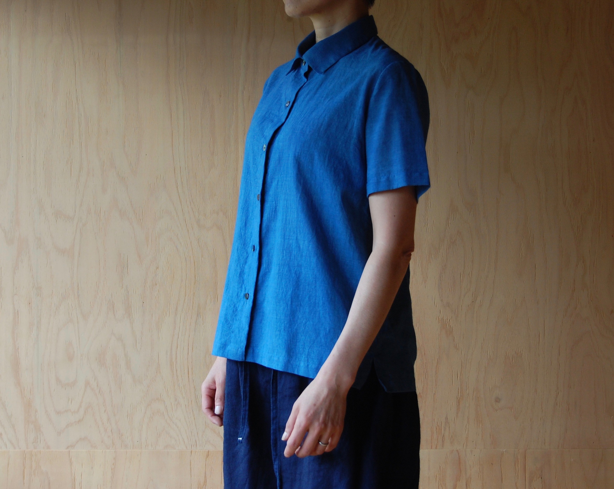 shirt indigo 2020-09-262023-04-24 2020年 works カデイコットンの細い番手を使い、明るい色に仕上げました。カデイならではの軽い着心地で、気持ちよく風が通ります。 ーーーーーーーーーー 藍染:灰汁発酵だて カデイコットン / オーガニック ーーーーーーーーー 肩幅 39cm 背幅 48cm 胸幅 48cm 背丈 60cm 身長 153cm(女性) ーーーーーーーーーー 24、500円 (税込) ーーーーーーーーーー スタジオにてご試着いただけます。contactよりご連絡お待ちしております。 ーーーーーーーーーー SHINOBU