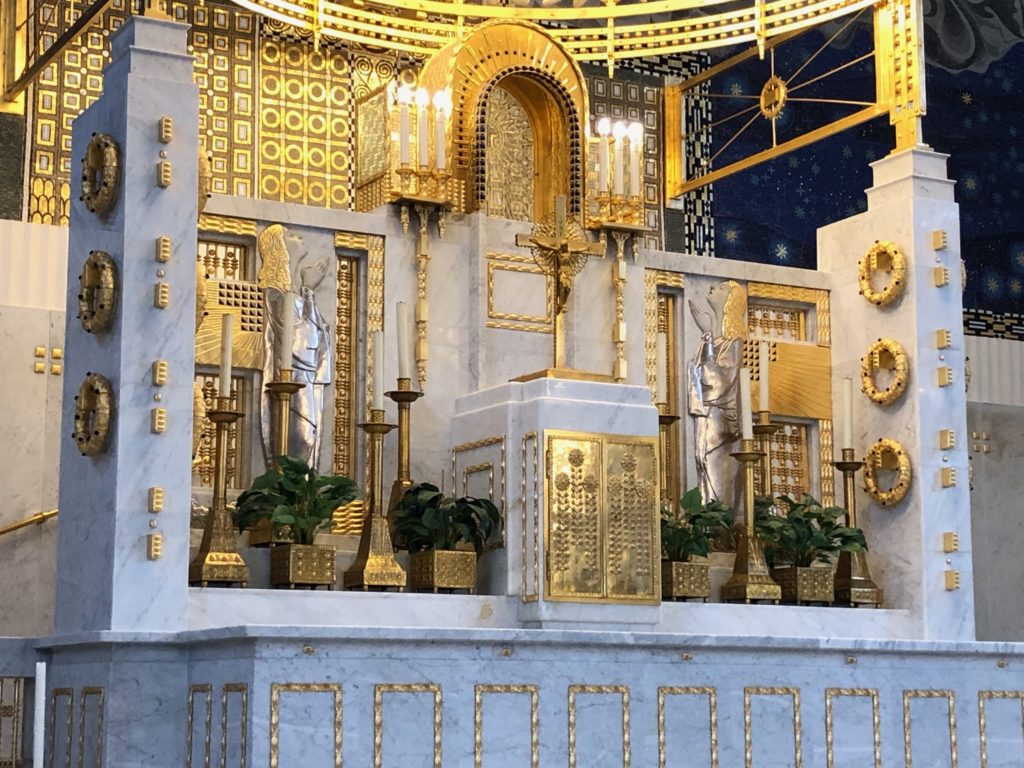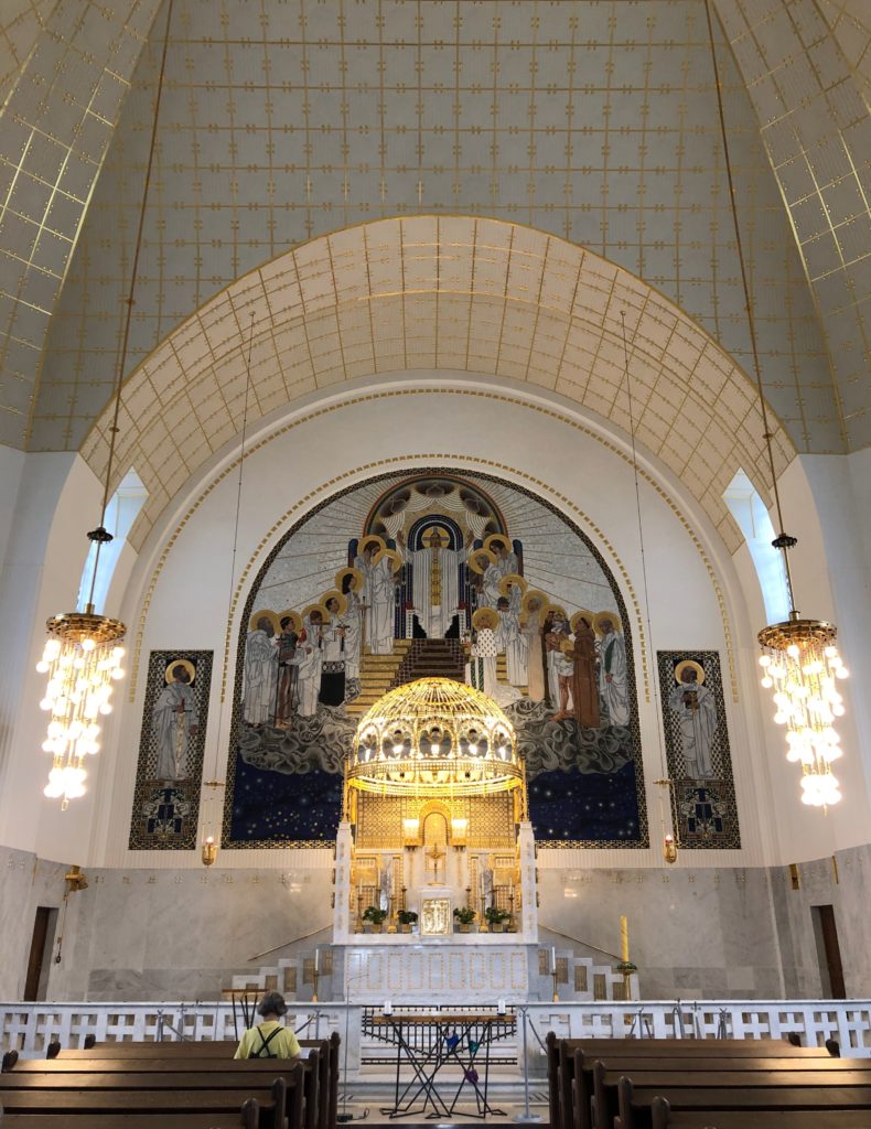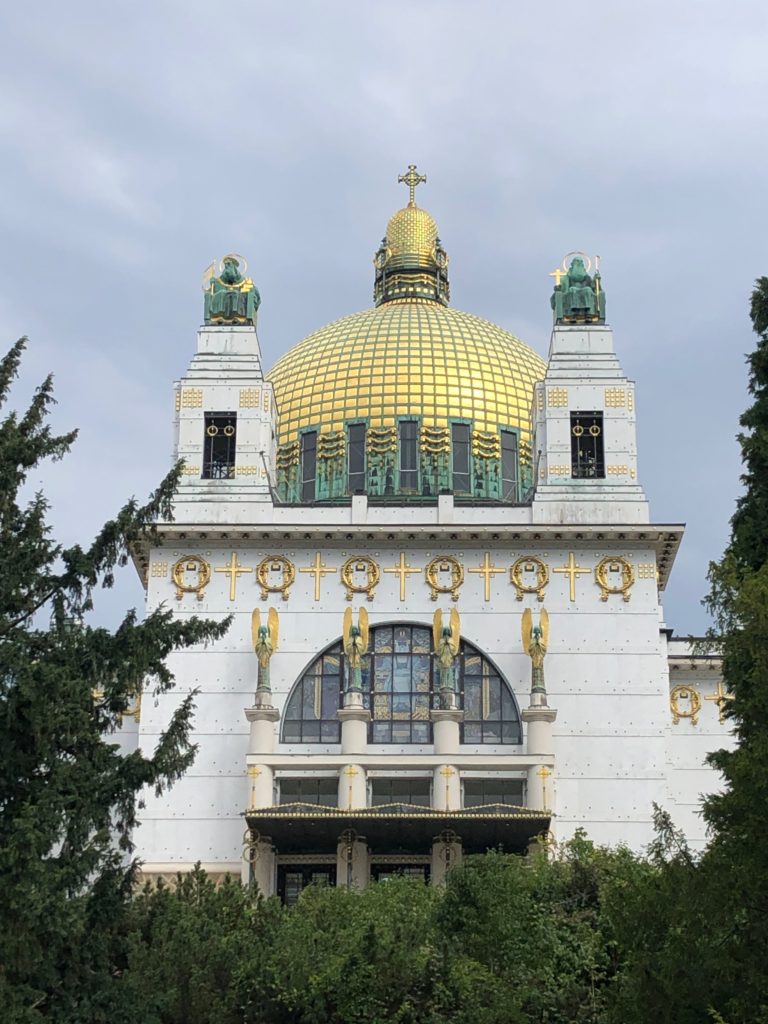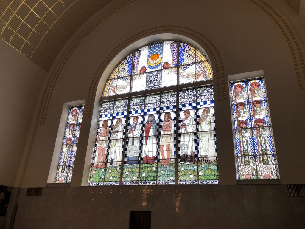 建築家オットー・ワーグナー(Otto Wagner)のシュタインホーフ教会(Kirche am Steinhof)。この教会は広大な精神病院の敷地の一番高いところにある。この教会では、現在でも敷地内の精神病患者のためにミサを行っているようだ。