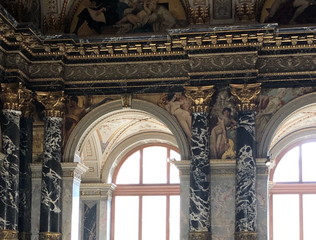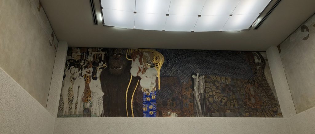 この日最後に訪れたのがセセッション館。クリムトのヴエートーベンフリースが納められている。作品集を見ているだけではわからない、素材感や所々隆起した細やかな施しを見つけることができた。そしてクリムトの軽やかな人間性まで伝わってくる気がして、駆け込みだったが鑑賞できて良かった。