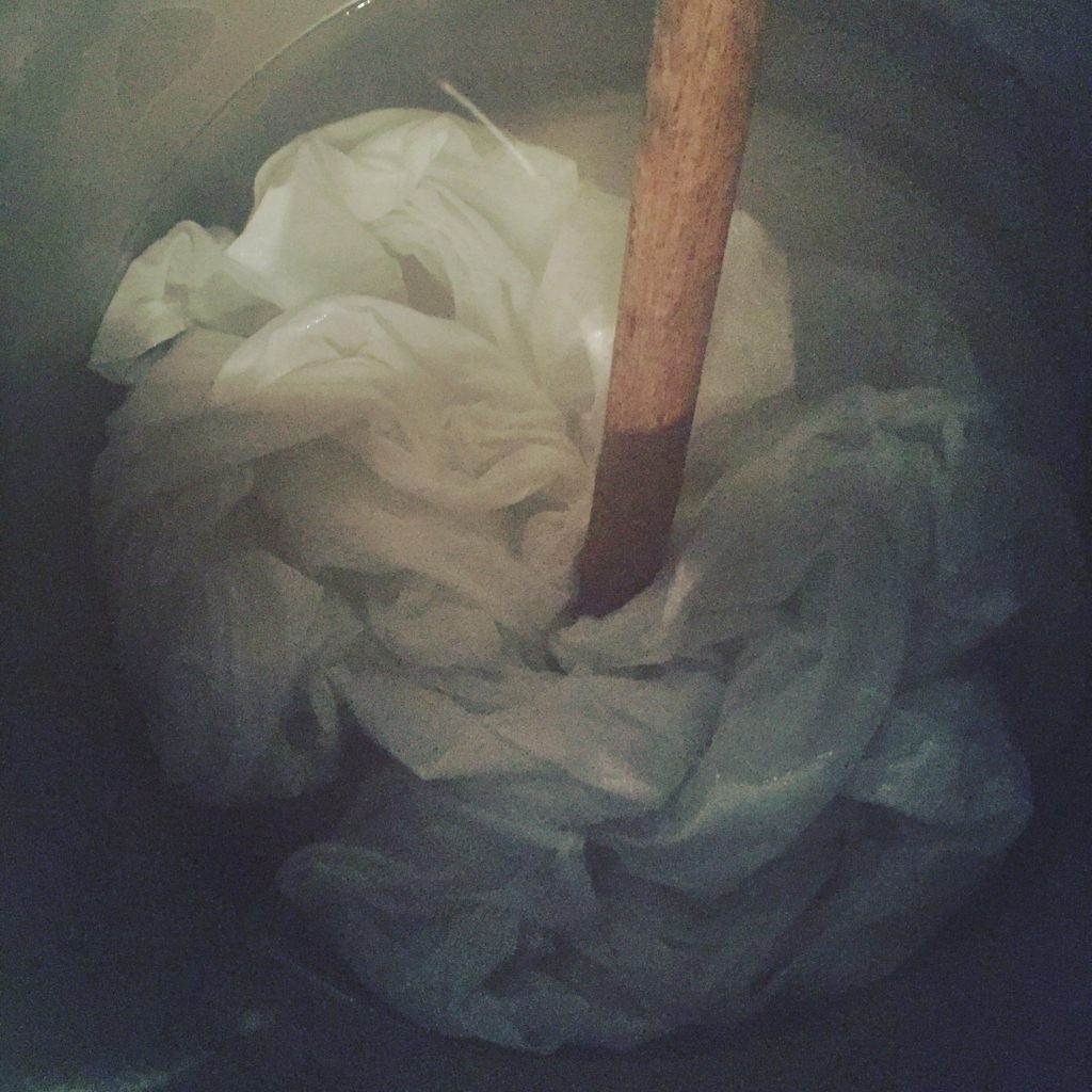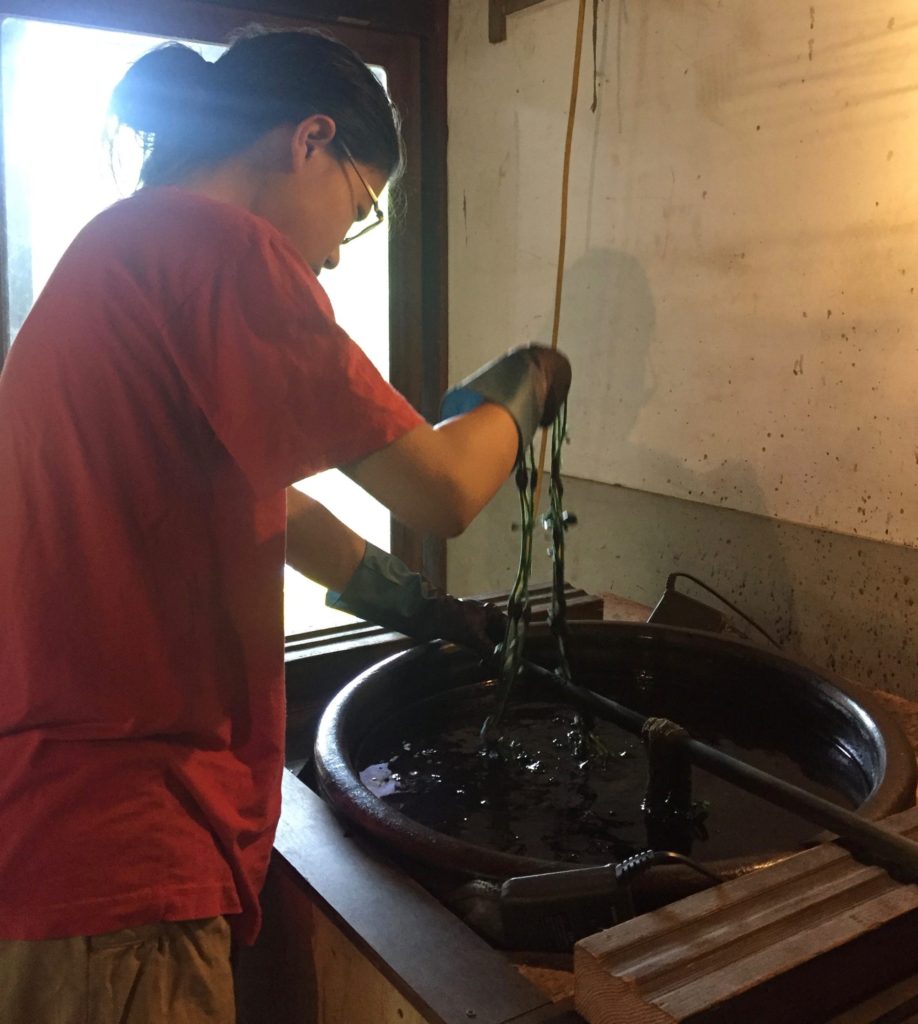 今日は『途中』の大苗さんが、後日行われる展示会に出品する糸を染めに来てくれました…